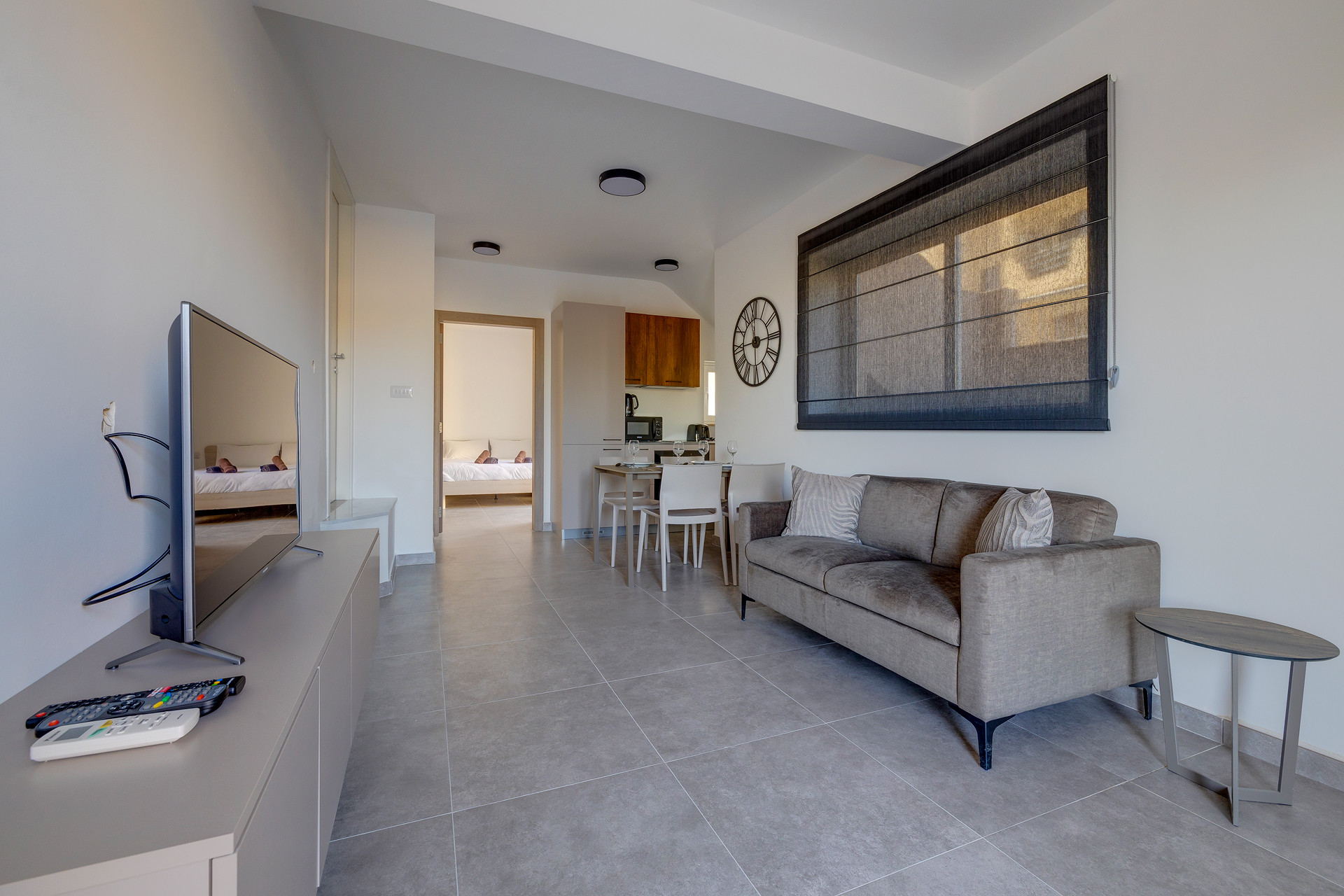 Las áreas de estar, comedor y cocina fluyen perfectamente juntas, creando un ambiente funcional pero acogedor donde puedes relajarte después de un día explorando Malta.