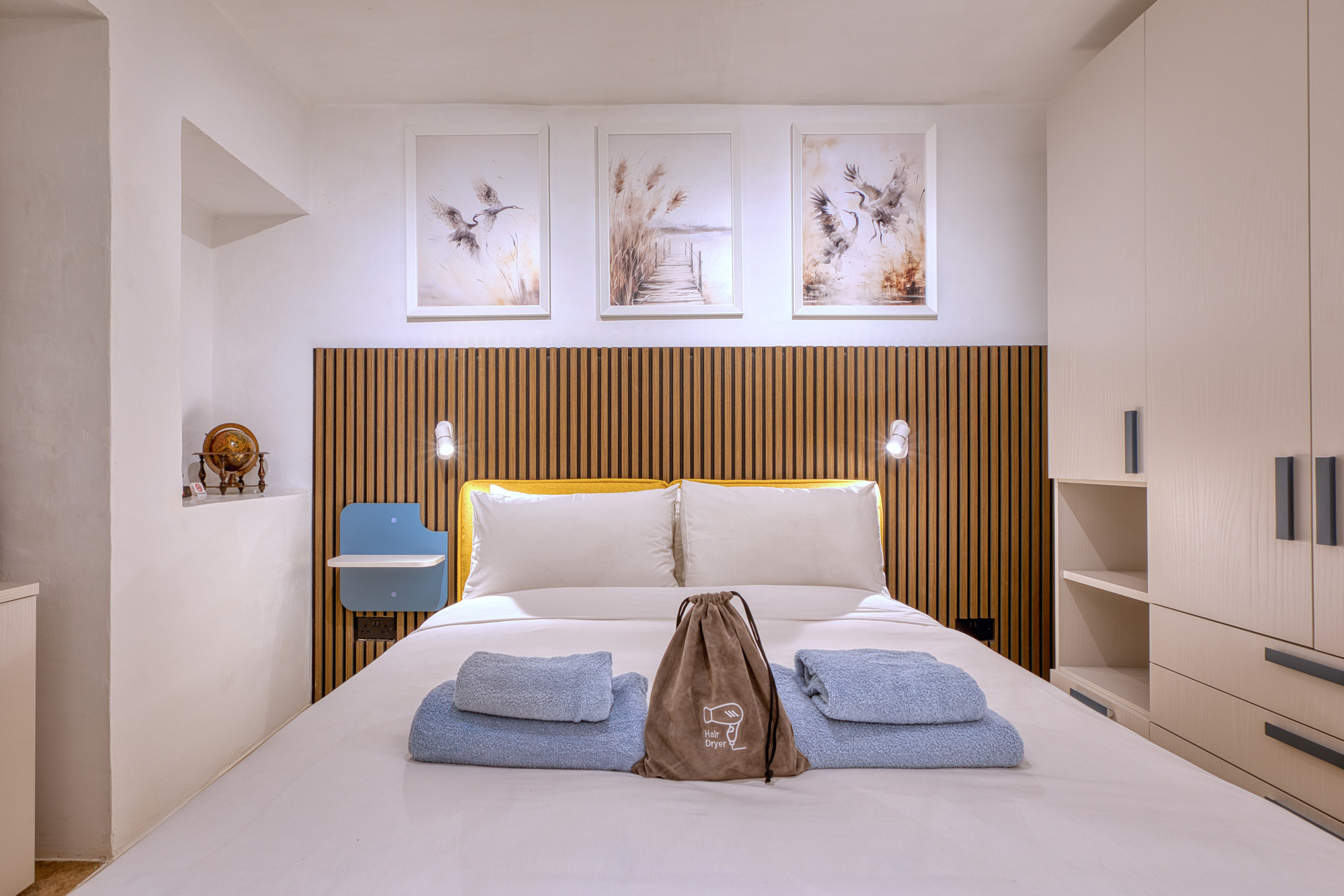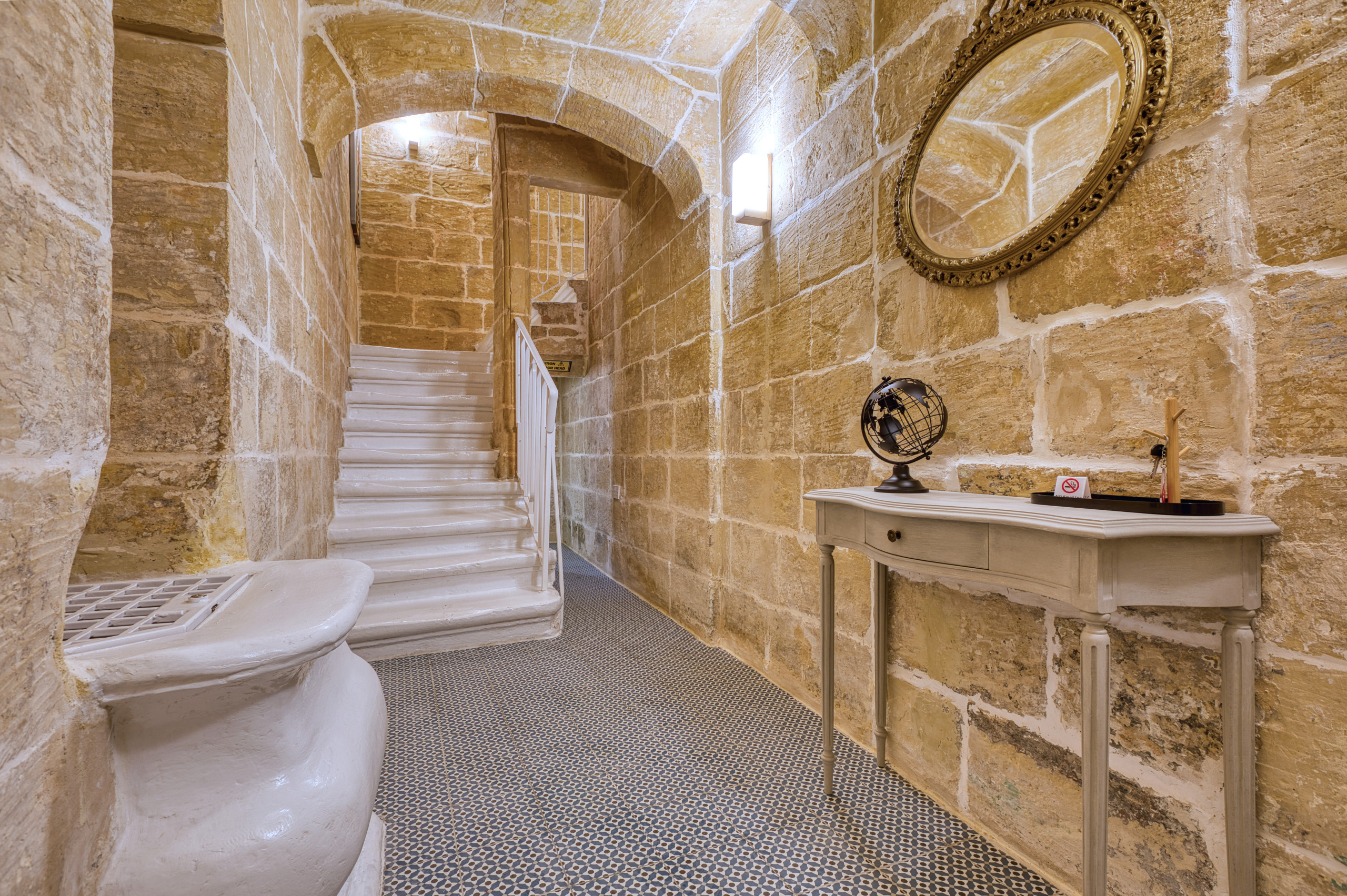 Tu entrada privada conduce a un encantador rellano donde las paredes de piedra expuesta y los techos abovedados elegantes te transportan inmediatamente a través de siglos de historia mediterránea. La primera planta ofrece una cómoda habitación doble, amueblada con esmero con ropa de cama de calidad para noches de descanso después de aventuras isleñas.