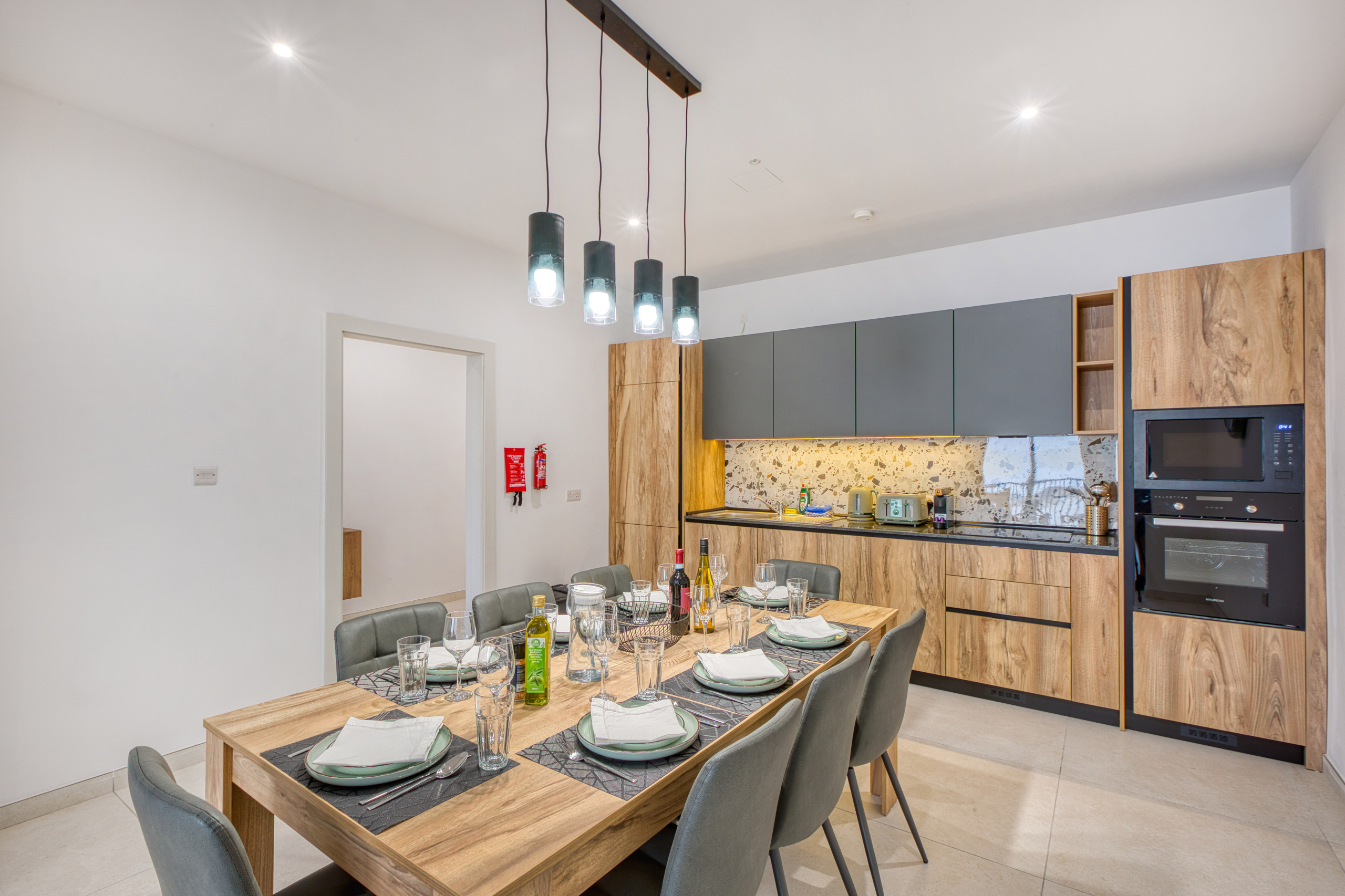 La cuisine a été décorée avec style et est entièrement équipée, comprenant une machine à café, un grille-pain et un lave-vaisselle.