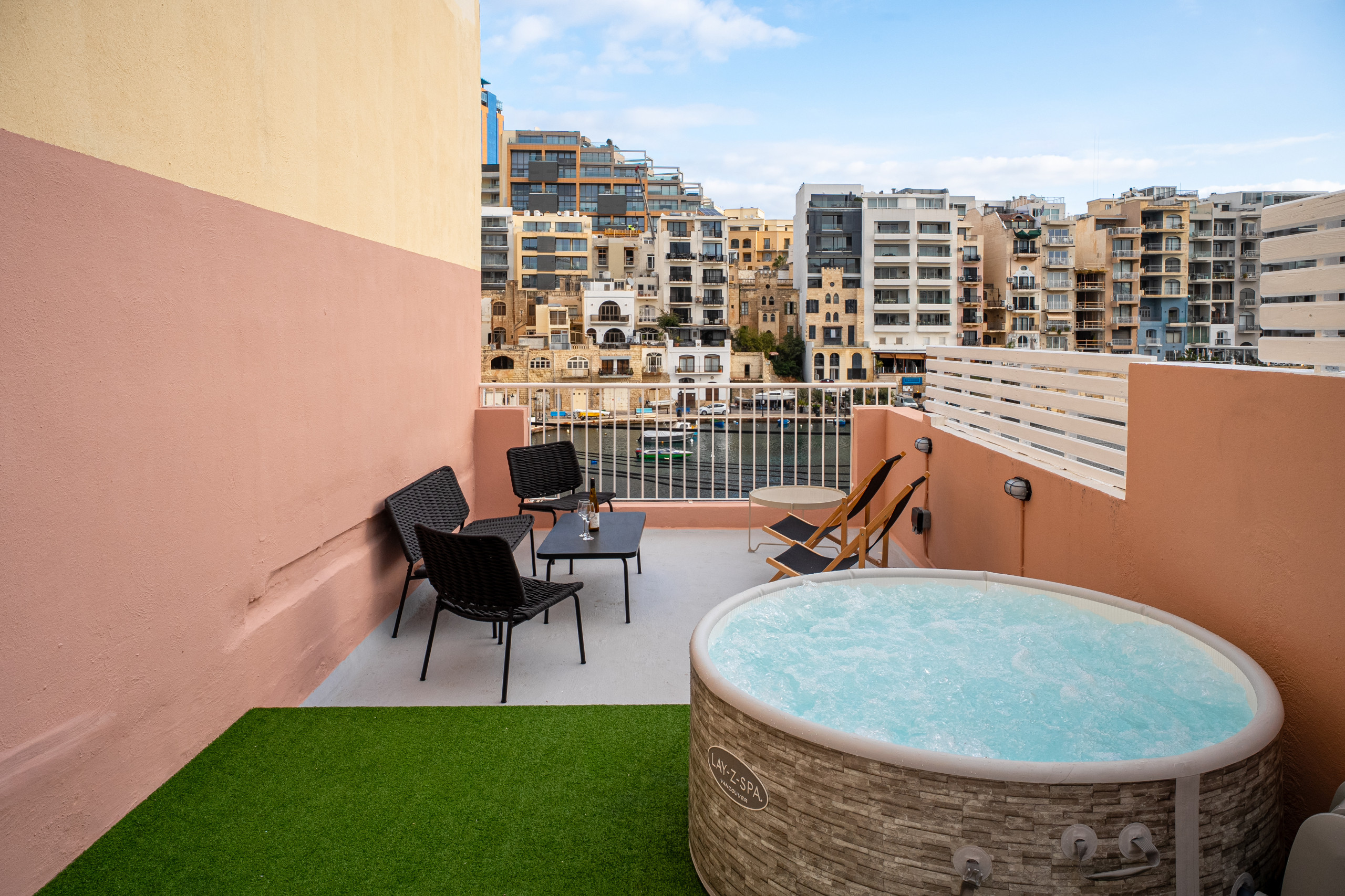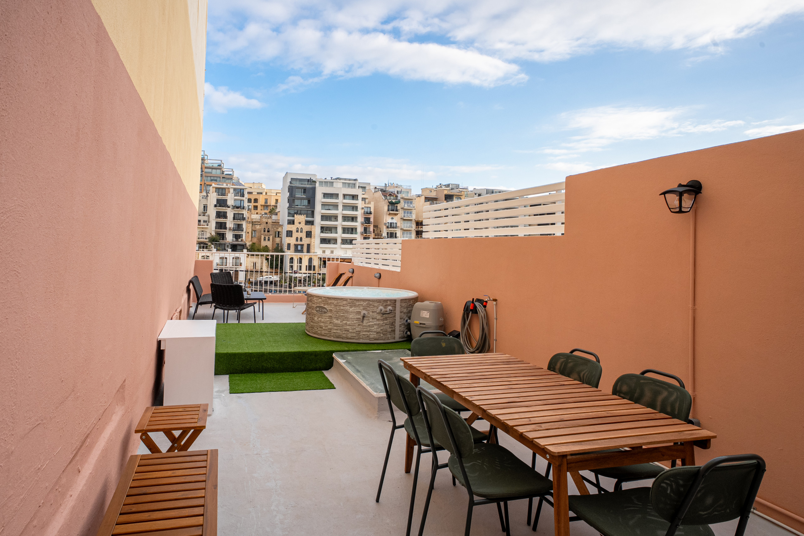 Le point d'orgue de la maison de ville est la grande terrasse privée sur le toit, conçue pour des moments inoubliables. D'ici, profitez de vues panoramiques sur la baie de Spinola, que ce soit en bronzant pendant la journée ou en vous détendant sous les étoiles la nuit.