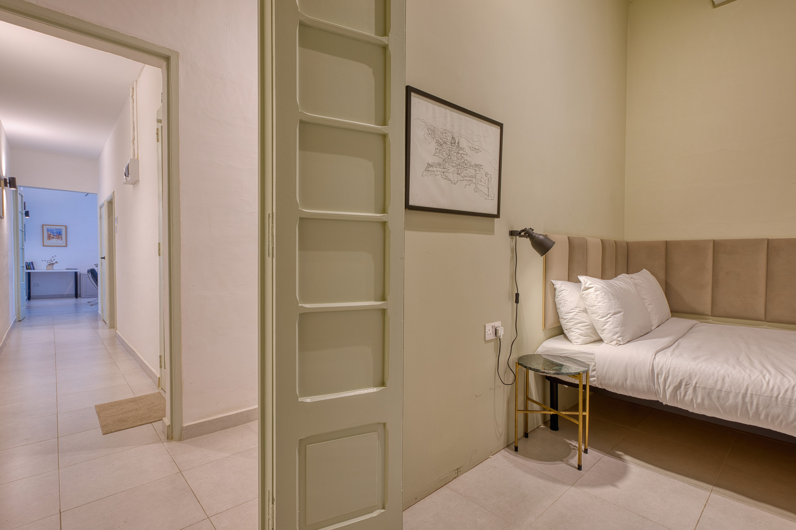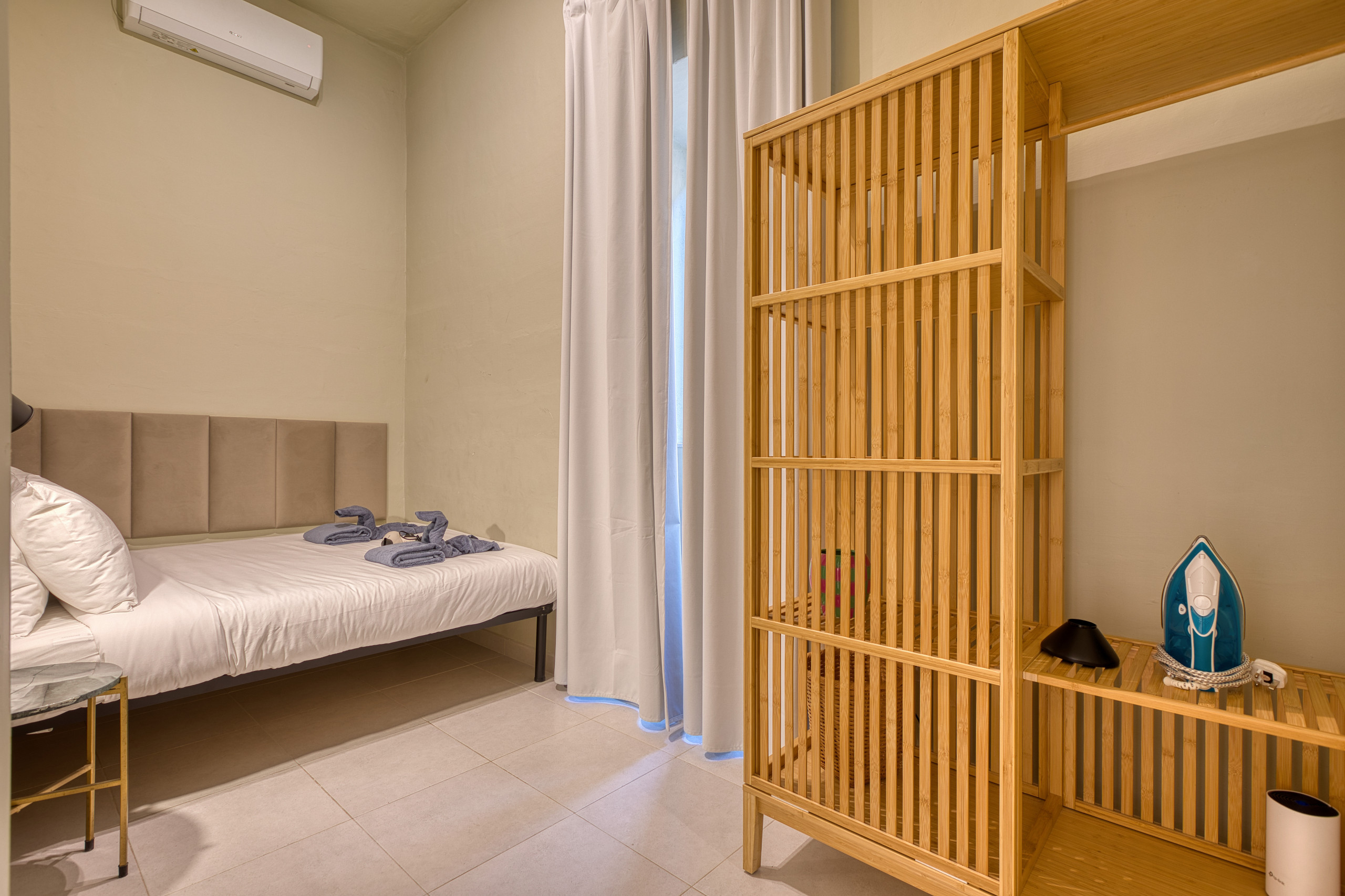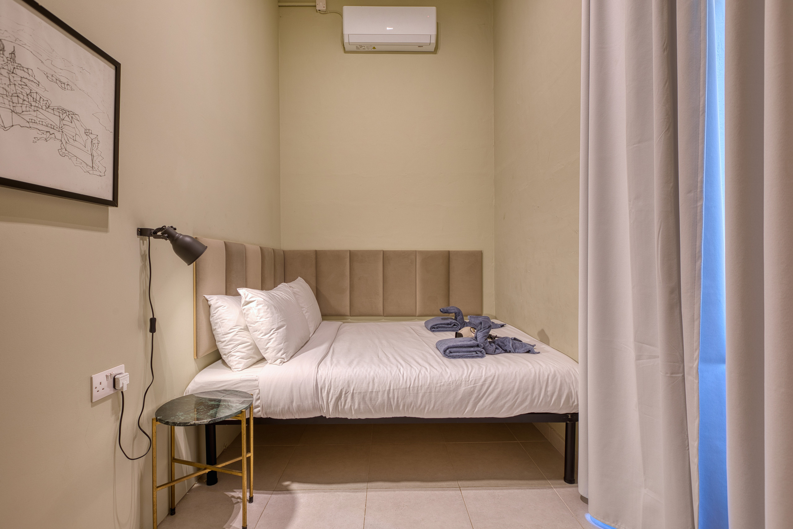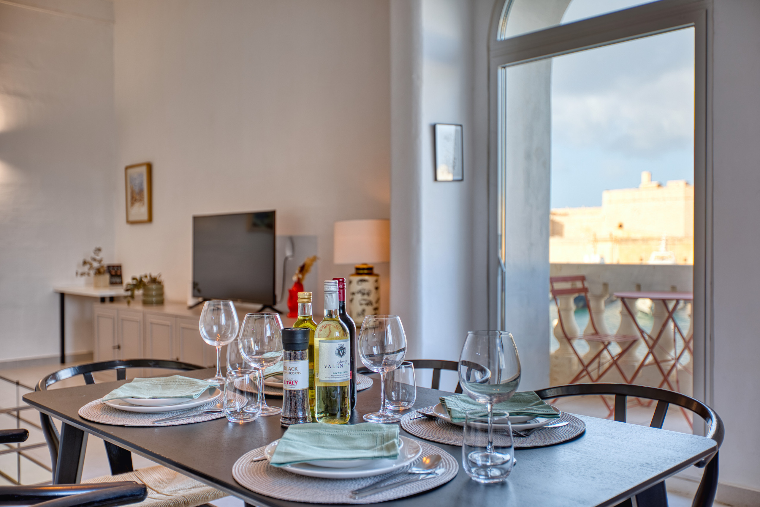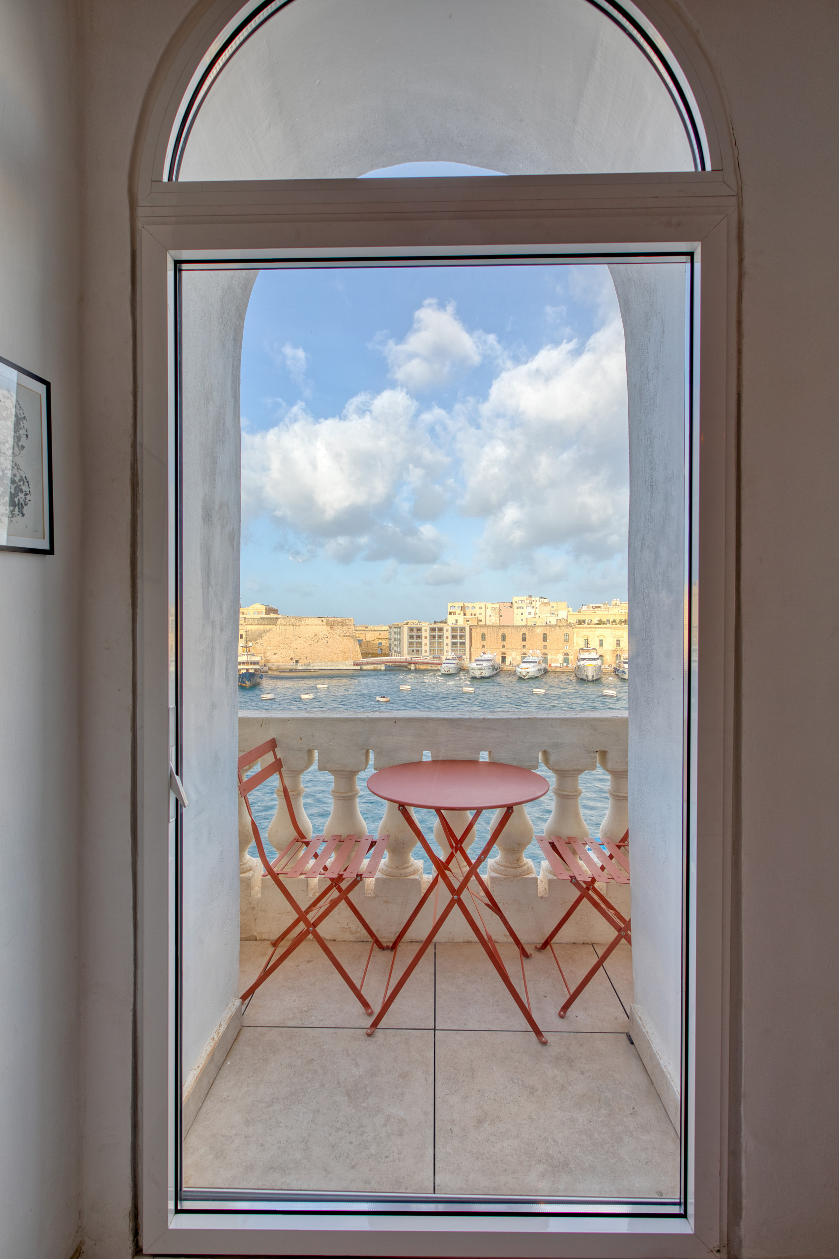 Step out onto the small private balcony for fresh sea air and a front-row seat to one of Malta’s most iconic panoramas. It’s the perfect spot for your morning coffee or an evening glass of wine as the harbour lights begin to sparkle.