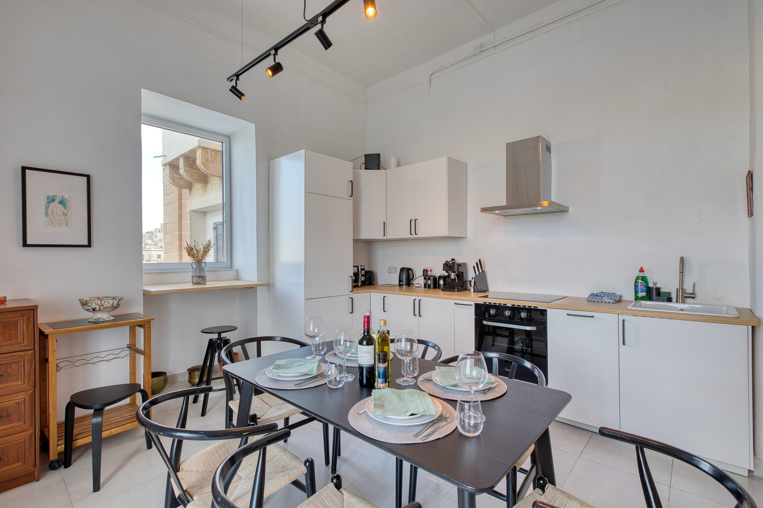 The modern kitchen is fully equipped with everything you need for a short city break or a longer stay, including: