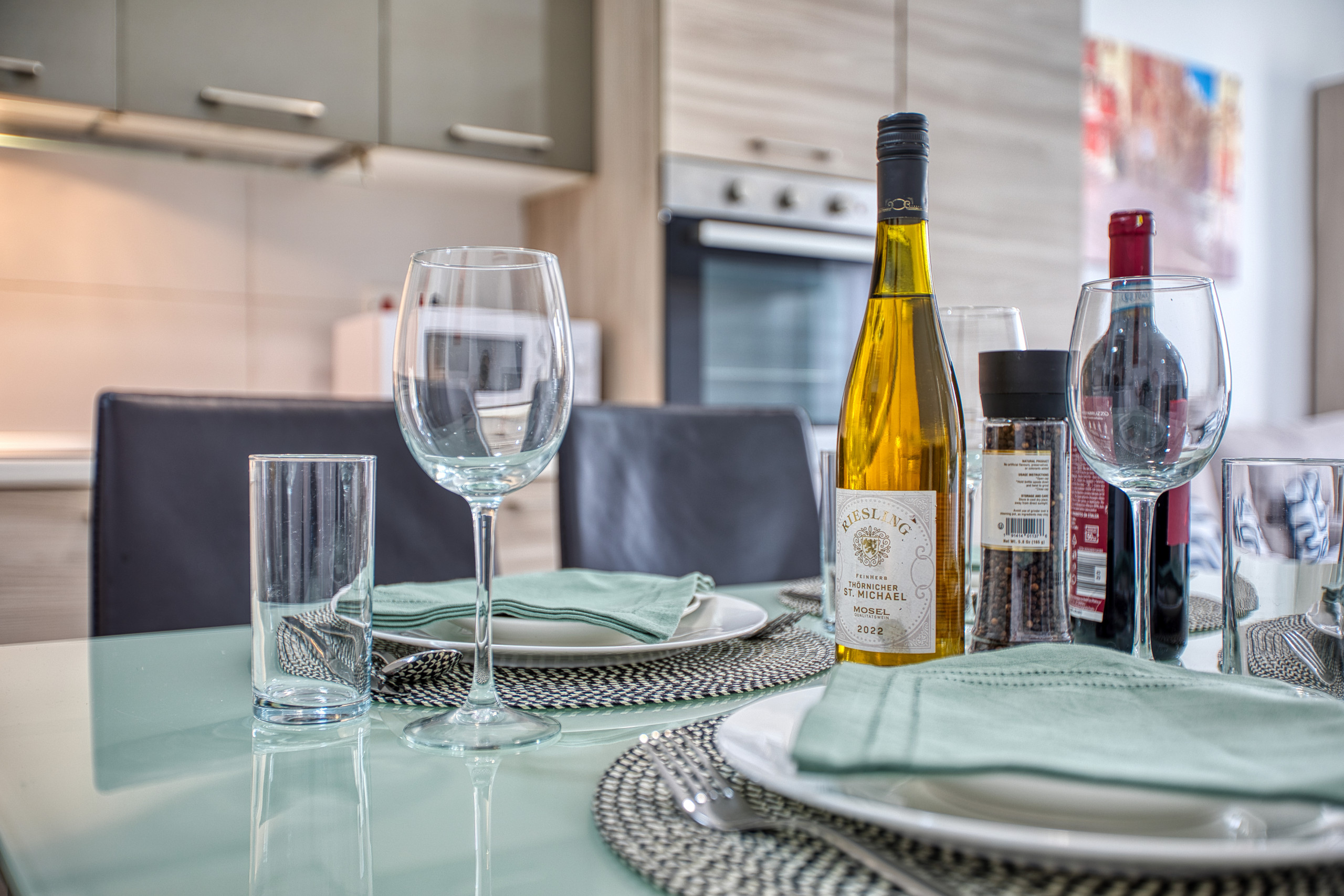 The modern open-plan kitchen is fully equipped with everything you need, whether you’re preparing a quick breakfast or a home-cooked meal: