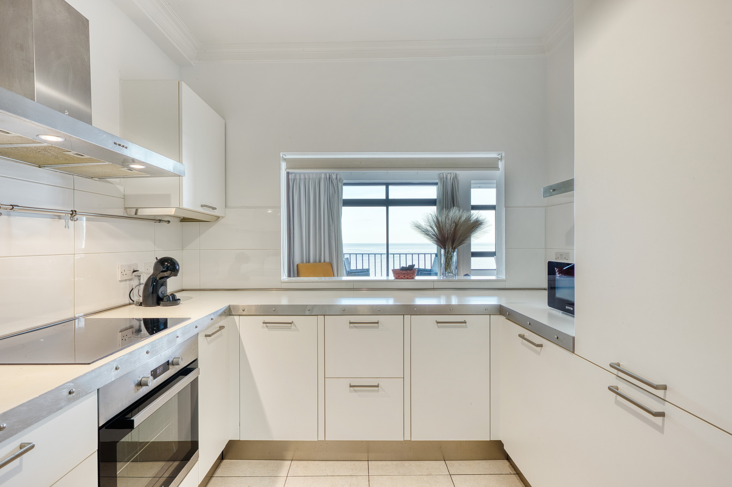 - Seafront views with large windows