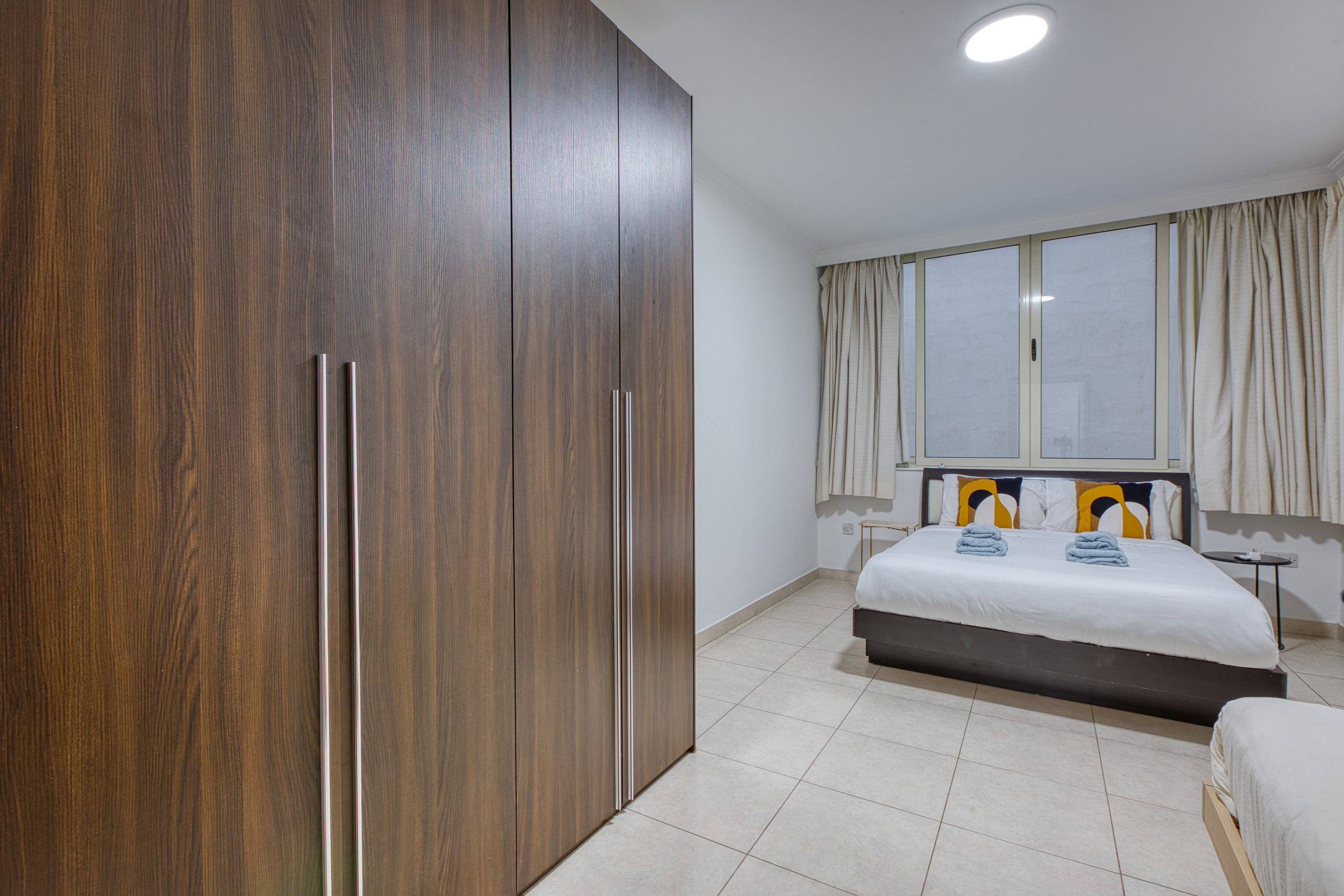 Second Bedroom: Double bed with ample storage space.