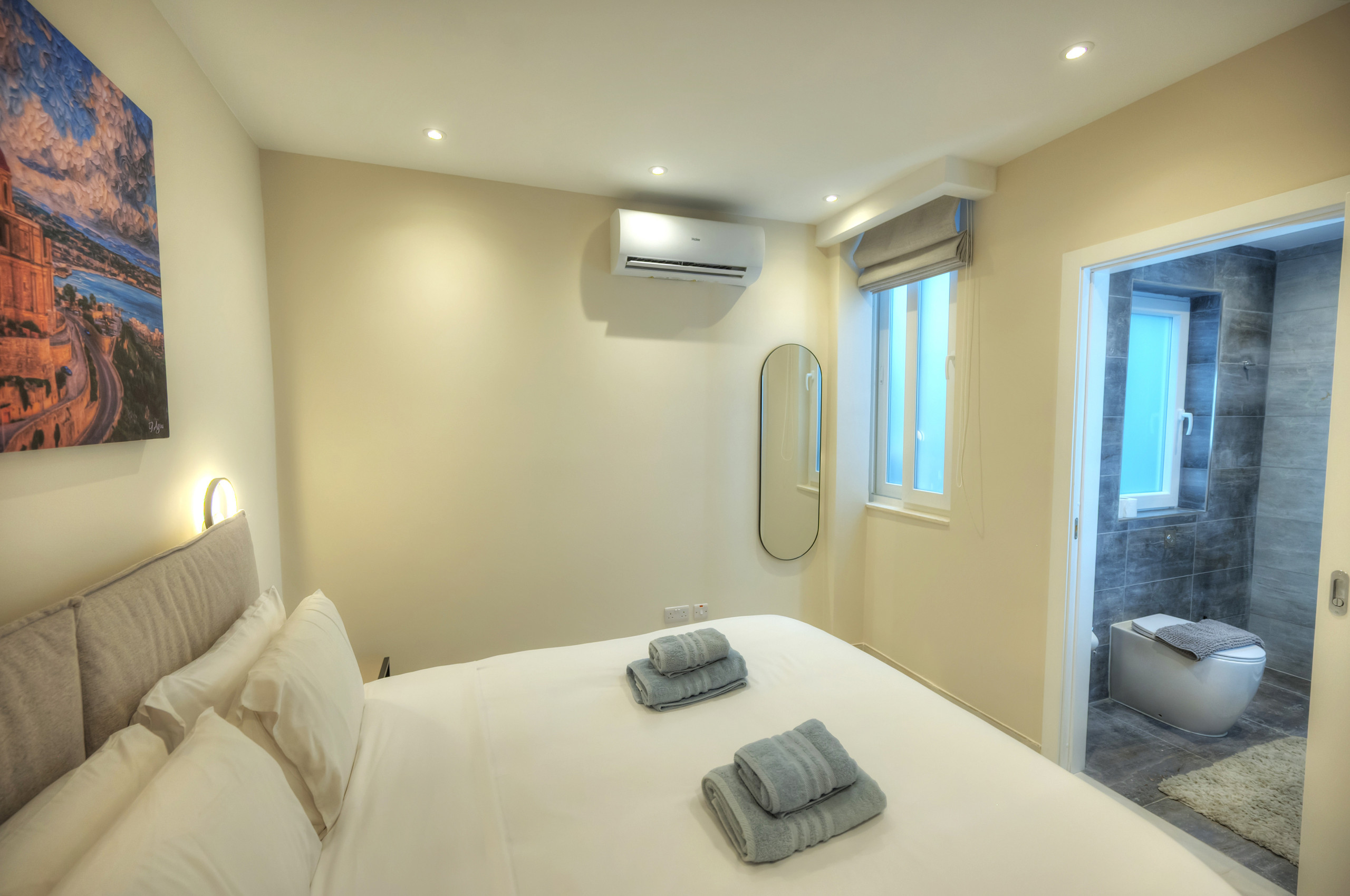 Two elegant double bedrooms, each featuring a private ensuite bathroom for comfort and exclusivity