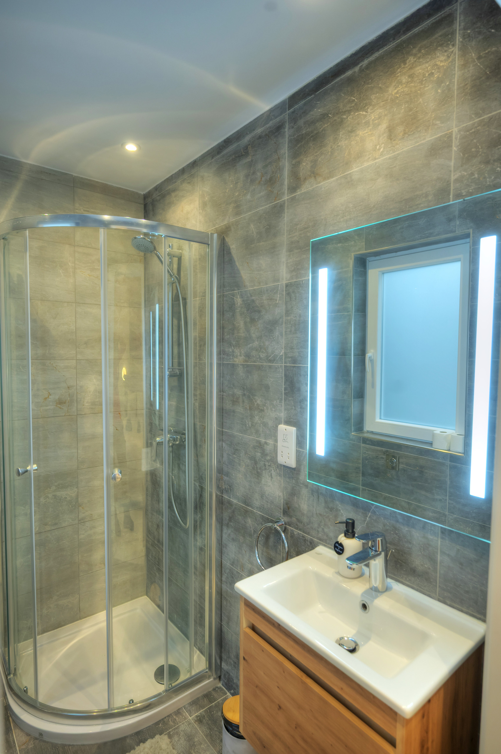 - Main bathroom with a sleek walk-in shower and modern fittings
